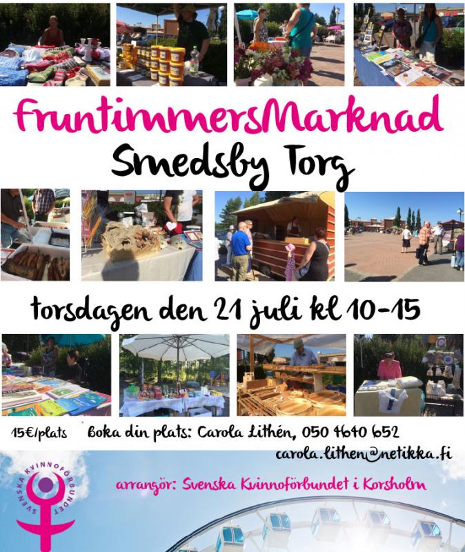 Torsdagen den 21 juli kl 10 - 15 är det dags för den traditionella Fruntimmersmarknaden i Smedsby. Välkomna på uppköp!